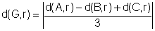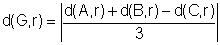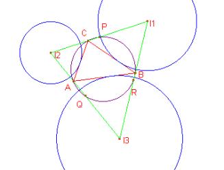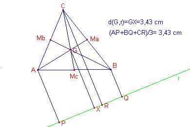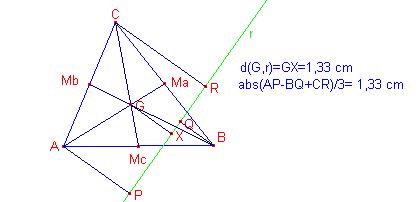 exterior al triangle és igual a la mitjana aritmètica de les distàncies dels