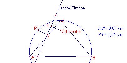 La recta de Simson (podeu veure recta de Simson) del punt P equidista del