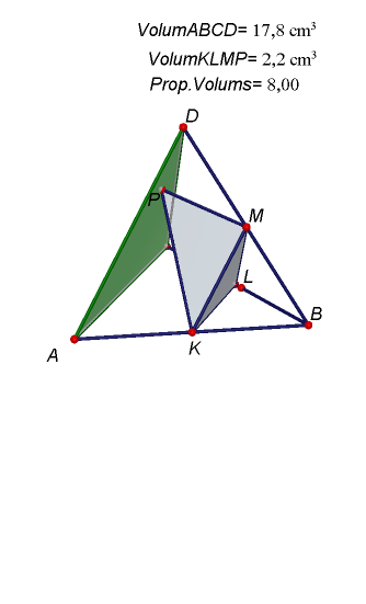 L, M els punts migs de les arestes AB, BC, BD, respectivament.