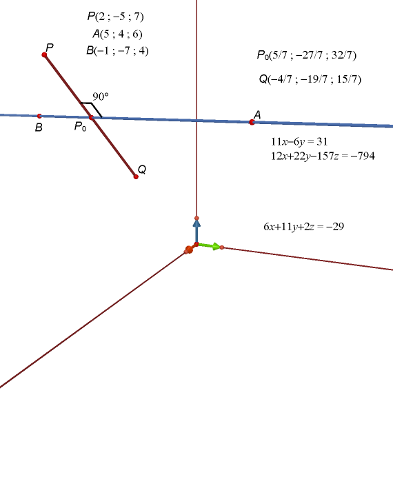 Determineu el punt Q simètric del punt respecte de la recta que passa pels punts , .