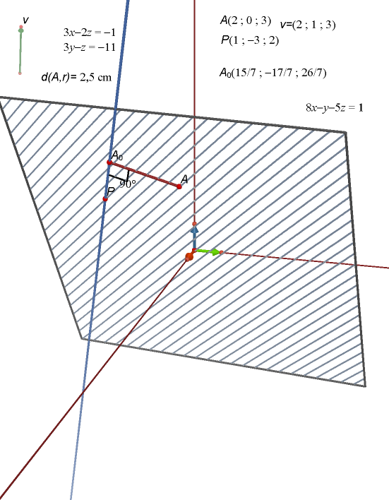 L’equació general del plànol que passa pel punt P i conté la recta r.