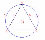 recta que passa pels punts L, M talla la circumferència C1 en els punts X, Y.