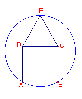 una circumferència passa pels punts A, B i E. Quin és el radi del cercle.