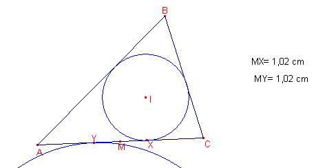tangència amb el costat de les circumferències inscrita i exinscrita al costat.