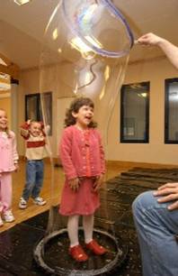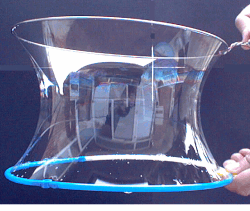 Xiqueta dins d’una catenoide feta amb una gran bombolla de sabó |