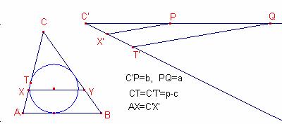 Siga T el punt de tangčncia de la circumferčncia inscrita
