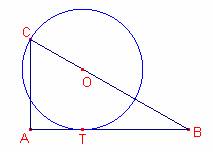 el centre de la circumferència, R el seu radi i T el punt de tangència.