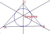 En un triangle les rectes que uneixen els včrtexs amb els punts de tangčncia de la circumferčncia inscrita al triangle (en els costats oposats) s’intersecten en un punt, anomenat el punt de Gergonne.