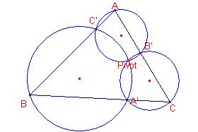 sobre el costat a, B’ sobre el costat b, C’ sobre el costat c.