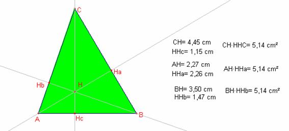 El producte dels segments que cada altura queda dividida per l’ortocentre és igual en les tres altures.