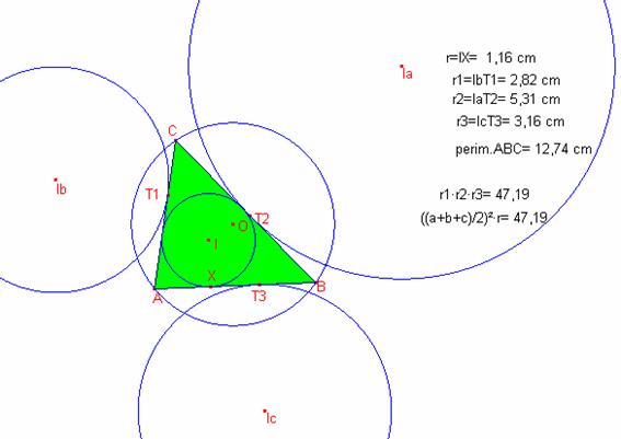 Siguen r el radi de la circumferčncia inscrita i ra rb rc els radis de les circumferčncies exinscrites.