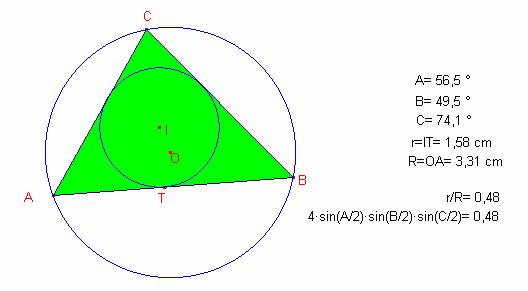 Siga el triangle siga r i R els radis de les circumferčncies inscrita i circumscrita, respectivament.
