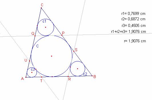 Siguen les rectes tangents a la circumferčncia C paral·leles als costats del triangle, les quals